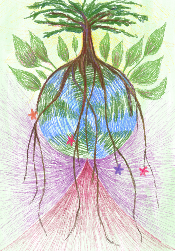 Earth Sky Connection, 9”x12”, Colored Pencil on Paper, 2025.